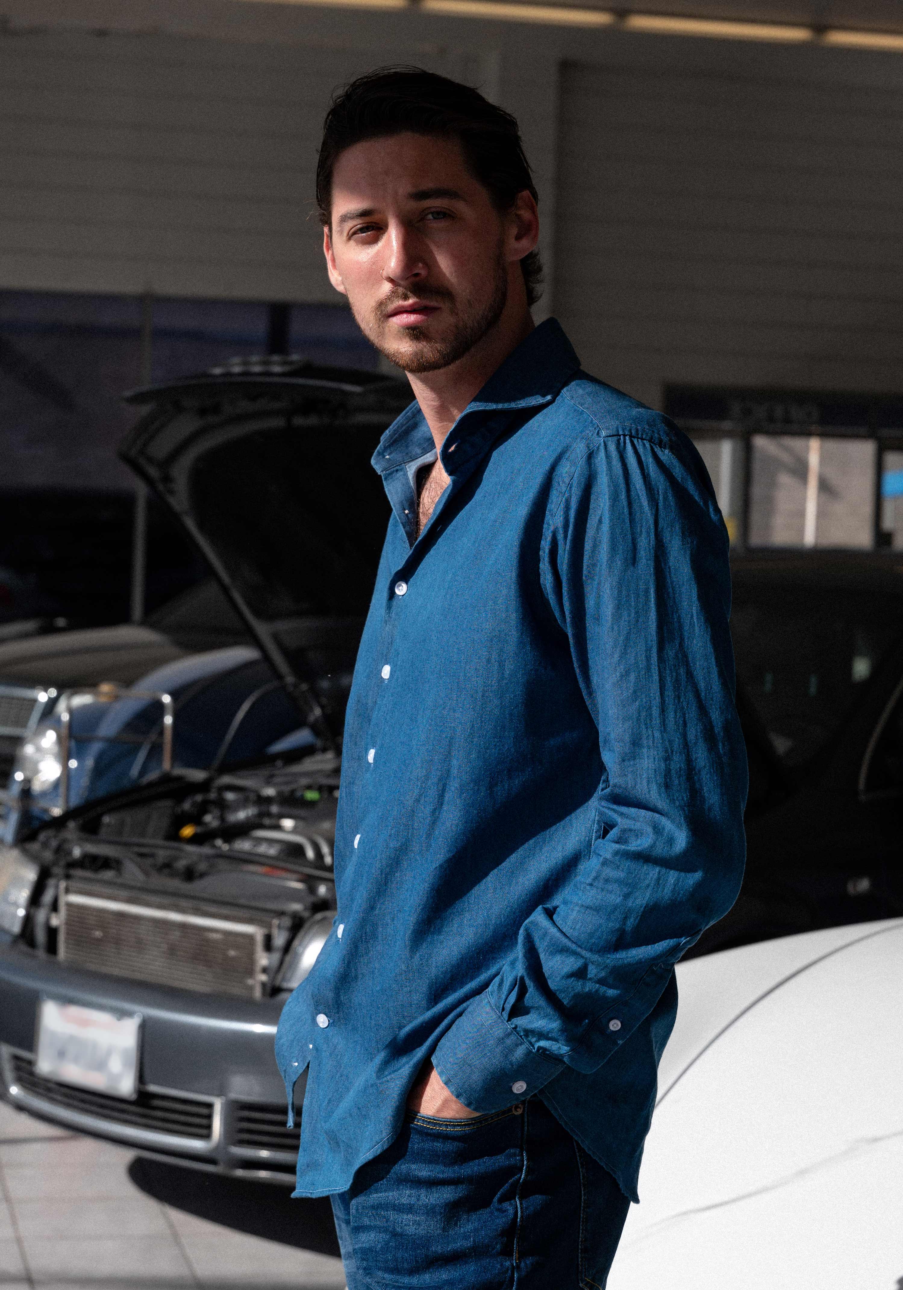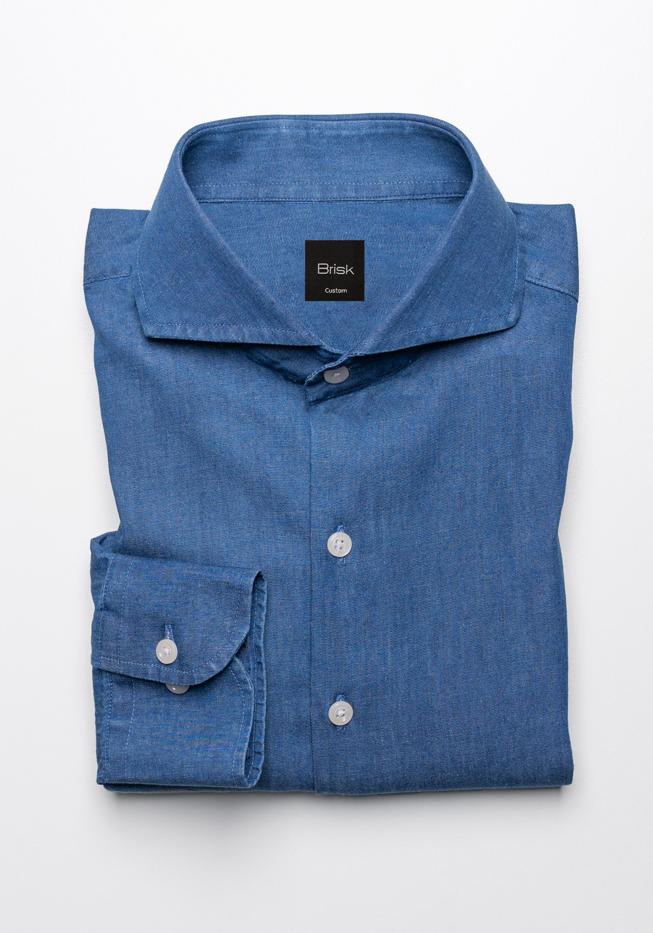 Denim Dark Wash Shirt - Cut Away Extreme Collar