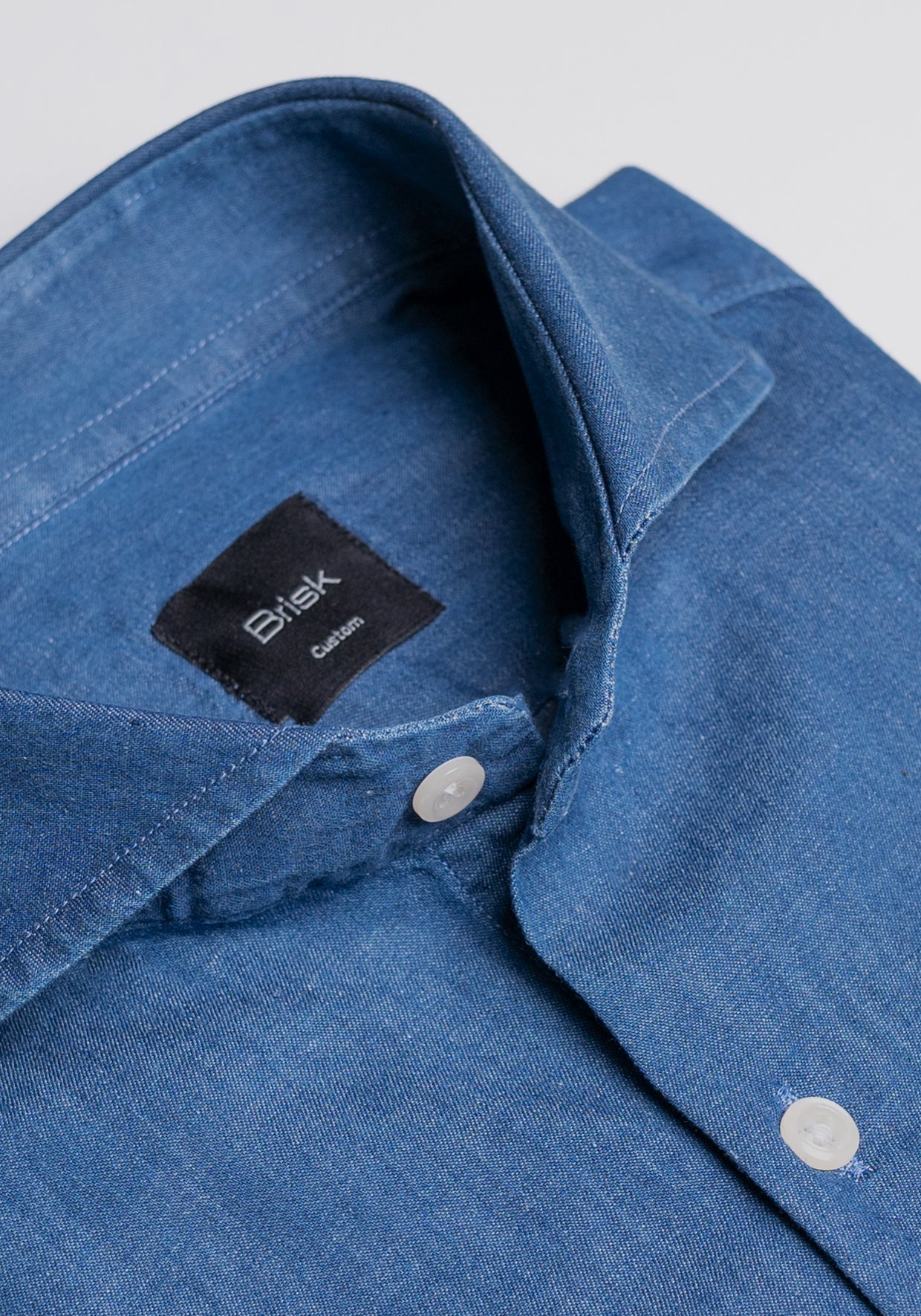 The Denim Dark Wash Shirt with a cut-away extreme collar offers a modern twist on a classic style. Crafted from 100% cotton, it provides a soft and comfortable feel, making it ideal for all-day wear. Its lightweight design ensures easy movement, adding to its versatility for both casual and semi-formal occasions. This shirt effortlessly balances comfort and style, making it a standout addition to any wardrobe.