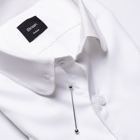 The Egyptian White 60's Poplin Club Collar Shirt is a stylish and sophisticated addition to any wardrobe. This shirt is made from 100% Egyptian cotton and features a medium-weight fabric with a 60's thread count, ensuring comfort and durability. The club pin collar adds a touch of elegance, while the detachable pin provides a unique detail that enhances its overall design. With a placket-less construction, this shirt offers a clean, streamlined look, making it suitable for both casual and formal occasions. Its blend of classic style and modern details makes it a versatile choice for any fashion-conscious individual. A Collar pin is included with the shirt.