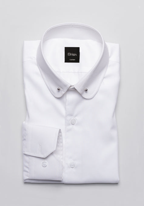 Egyptian White 60's Poplin Club Collar Shirt - Pin Collar