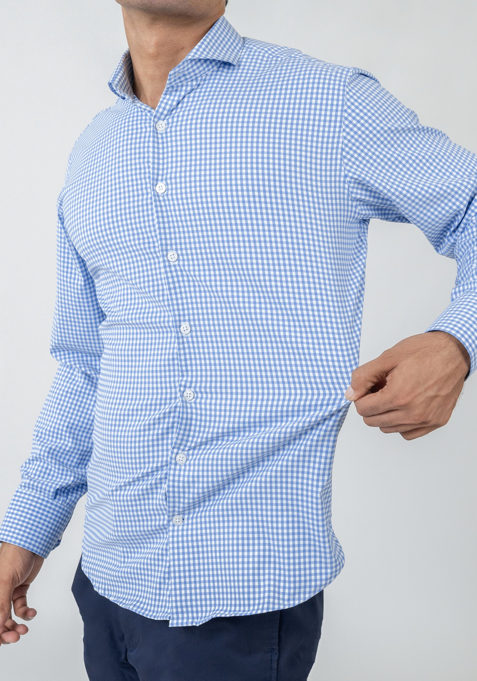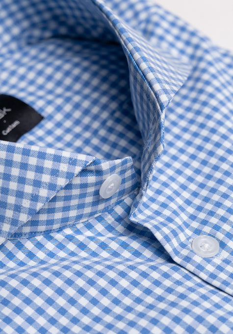 Sky Blue Ultra Stretch Performance Gingham Shirt - Wrinkle Free