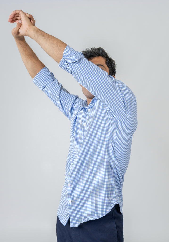 2. Modern Fit - A little generous in terms of yoke, the modern fit wraps perfectly around a smart body with a slight bulge around the belly. It’s fitted at the chest and semi fitted at the waistline, giving your unique proportions a flattering fit all across. This fitting is best suited for lean bodies, with the exception of a slight belly.