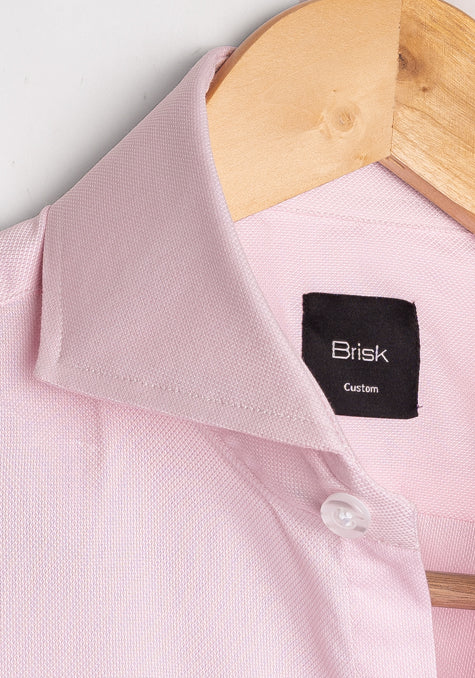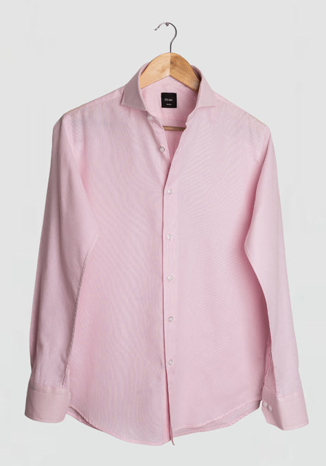 This pink pinpoint shirt is crafted from 100% cotton, providing a medium-weight fabric that is both crisp and comfortable. The cut-away extreme collar lends a modern and stylish flair, while the absence of a placket creates a clean, streamlined appearance. This shirt combines classic elegance with contemporary design, making it a versatile choice for both formal and casual occasions. Its medium weight and breathable nature ensure comfort throughout the day, making it an excellent addition to any wardrobe.