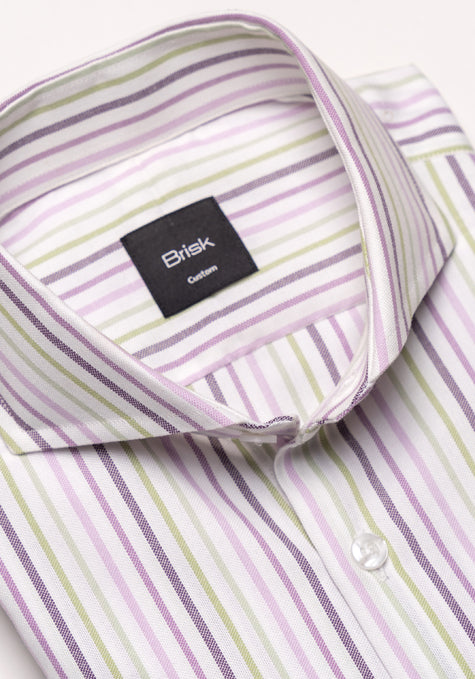 Plum Green Pinpoint Poly Stripes Shirt - Cutaway Extreme Collar