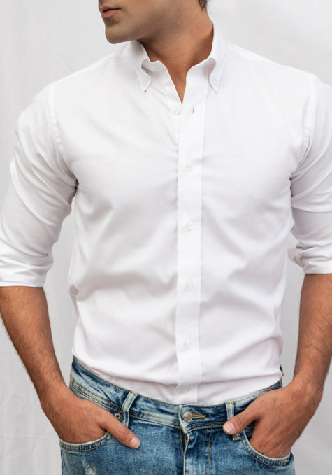 This classic white Oxford shirt is crafted from 100% cotton, providing a medium-weight fabric that is both crisp and comfortable against the skin. Designed with a soft button-down collar, it offers a refined yet relaxed look, making it suitable for both casual and formal occasions. The inclusion of a placket enhances its polished appearance, ensuring that you maintain a sharp style throughout the day. Whether paired with jeans for a casual outing or dressed up with slacks for the office, this versatile shirt is a timeless addition to any wardrobe.