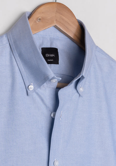 The blue crisp oxford shirt is crafted from 100% cotton, specifically using the durable and comfortable oxford weave. It features a medium-weight fabric that offers both structure and breathability. The cotton material ensures a crisp, comfortable feel against the skin, providing a polished look throughout the day. This shirt also includes a soft button-down collar, giving it a classic yet casual appeal, while the placket adds a clean and refined finish to the overall design. Perfect for both work and casual settings, this shirt strikes a balance between style and comfort.