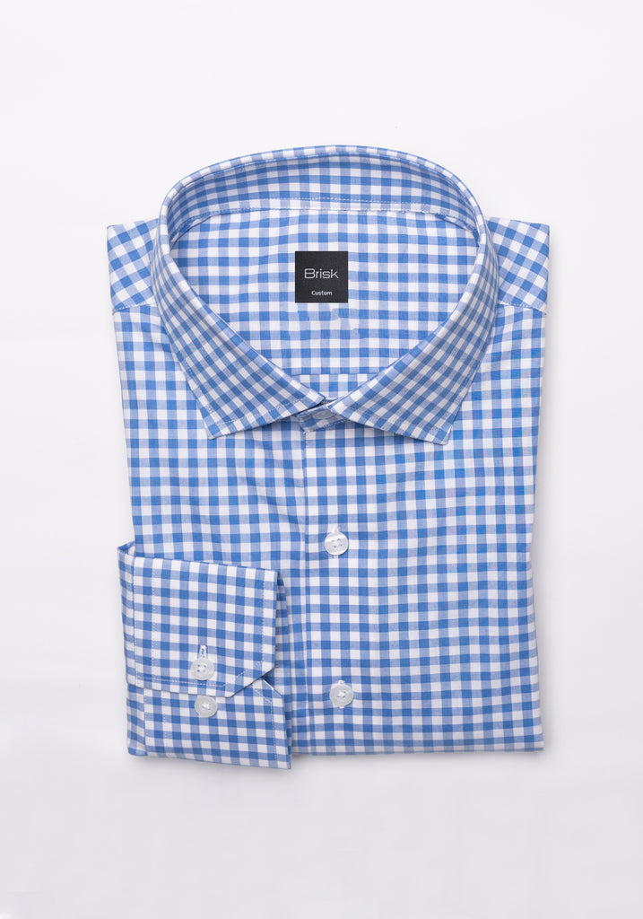 Sky Blue Gingham Crisp Pima Cotton Shirt - Cutaway Classic Collar
