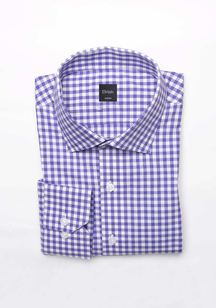 Purple Gingham Crisp Pima Cotton Shirt - Cutaway Classic Collar