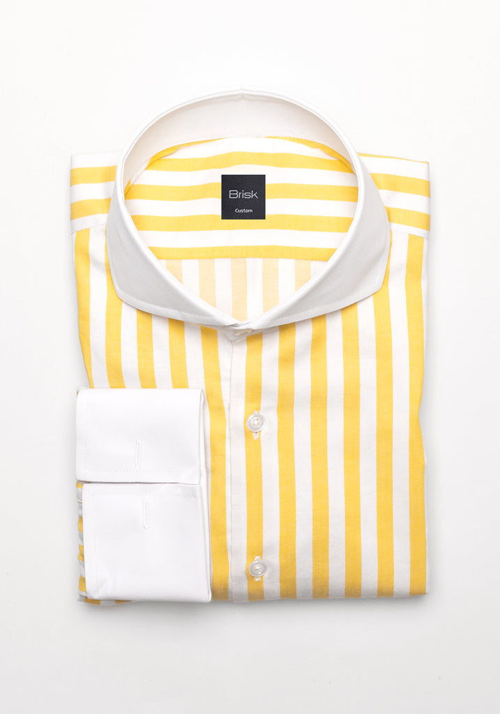 Yellow Bold Twill Stripes Pima Cotton Shirt - White Cutaway Extreme Collar & French Cuffs