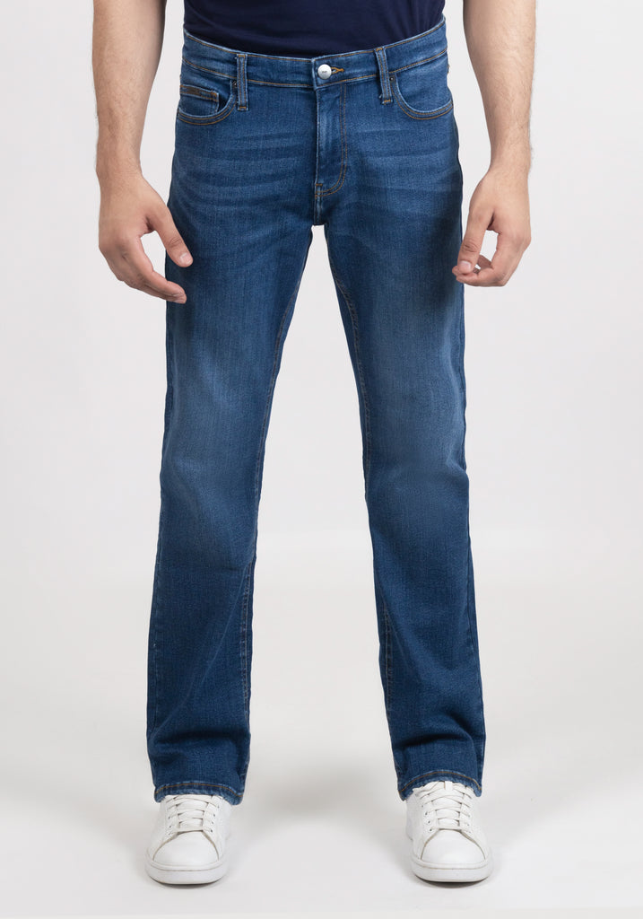 Blue Medium Rinse Wash Slim Straight Selvedge Jeans - Stud