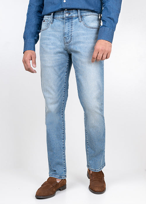Light Wash Slim Straight Selvedge Jeans - Stud
