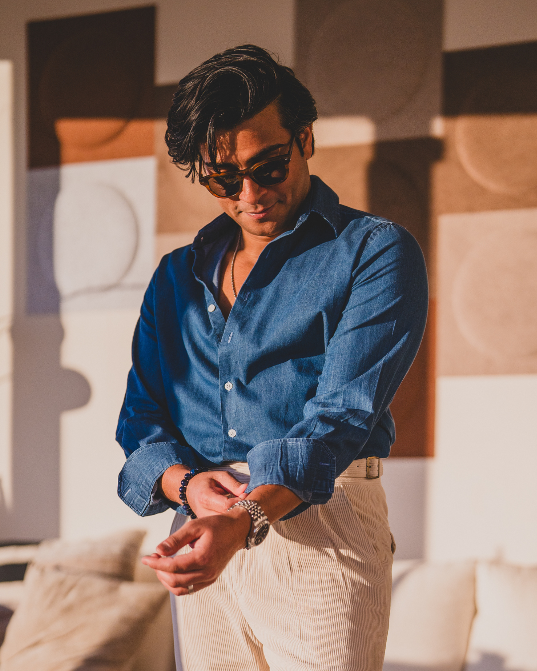 A little generous in terms of yoke, the modern fit wraps perfectly around a smart body with a slight bulge around the belly. It’s fitted at the chest and semi-fitted at the waistline, giving your unique proportions a flattering fit all across.