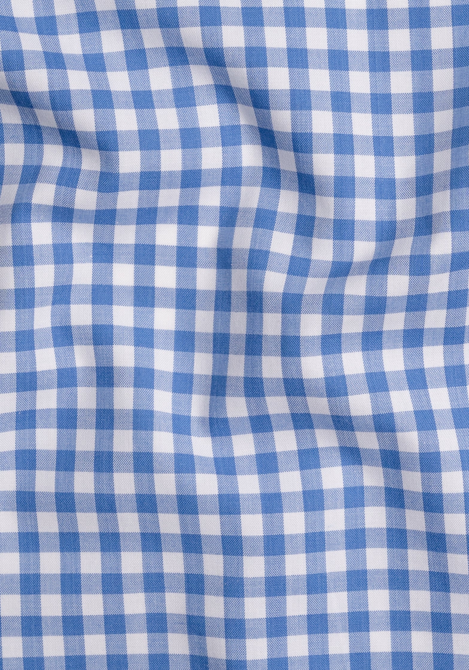Sky Blue Gingham Crisp Pima Cotton - Wrinkle Resistant