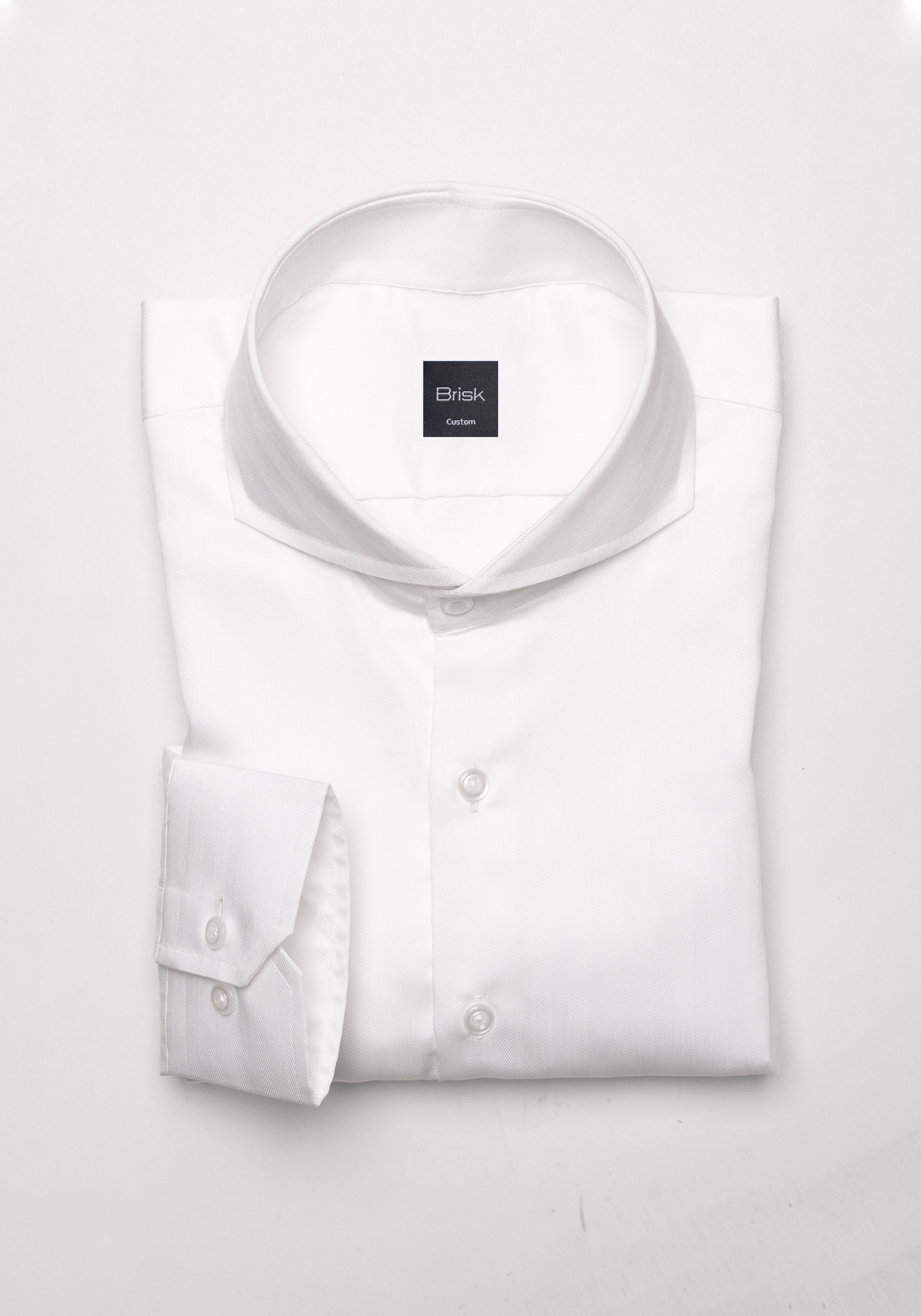A true classic, elevated. This Egyptian Pearl White Herringbone Shirt is crafted from 100% Egyptian cotton with a fine herringbone weave that adds subtle texture and a gentle sheen to the luxurious pearl white tone. It’s timeless, refined, and effortlessly sharp. The easy-care finish makes maintenance simple—wrinkle-resistant and crisp with minimal ironing, perfect for busy days or travel. The medium-weight fabric strikes the ideal balance between structure and breathability, ensuring comfort all day long. Tailored with a clean cut-away classic collar and a placket-free front, the silhouette is streamlined and modern. Choose reversible beveled cuffs for versatility or go with clean barrel cuffs for a more understated look. This shirt is a wardrobe essential—ideal for formalwear, weddings, or pairing with a sharp suit or tailored separates. Understated yet unmistakably elegant.