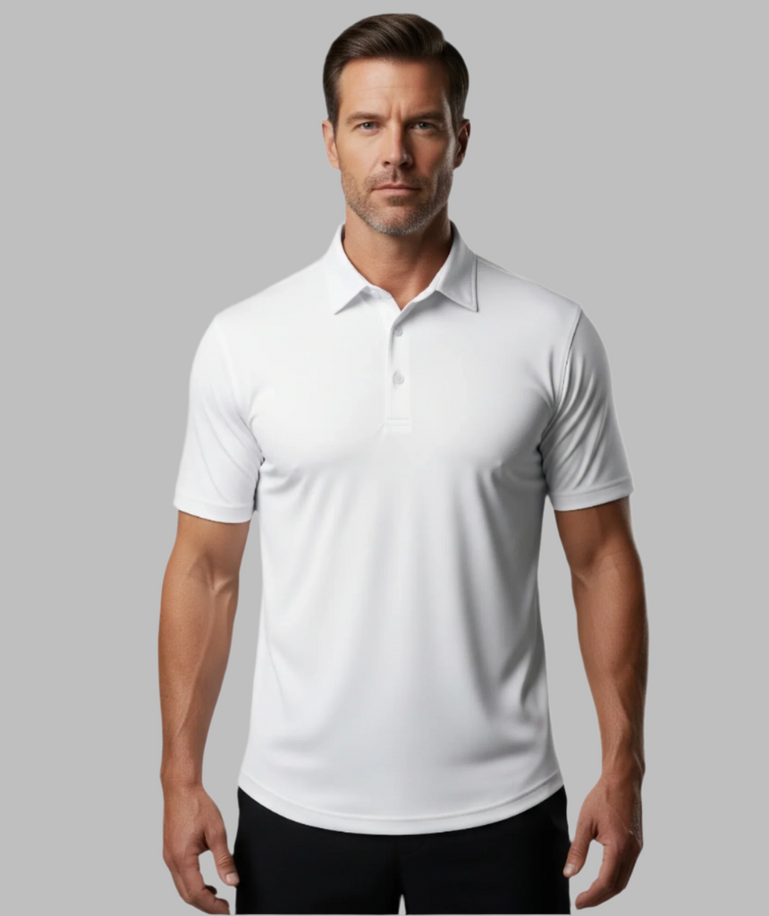 White Performance Jersey 4 Way Super Stretch Polo Half Sleeves Shirt - Wrinkle Free