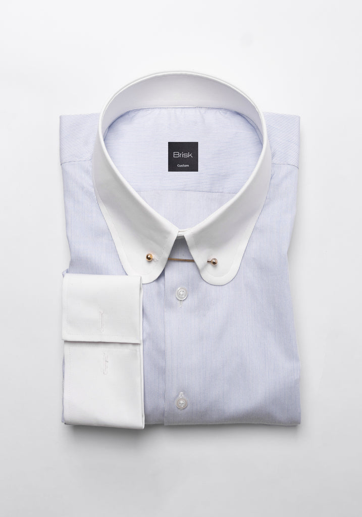 Soft Blue Pinstripes Pima Cotton Shirt - White Classic Golden Pin Collar & French Cuffs