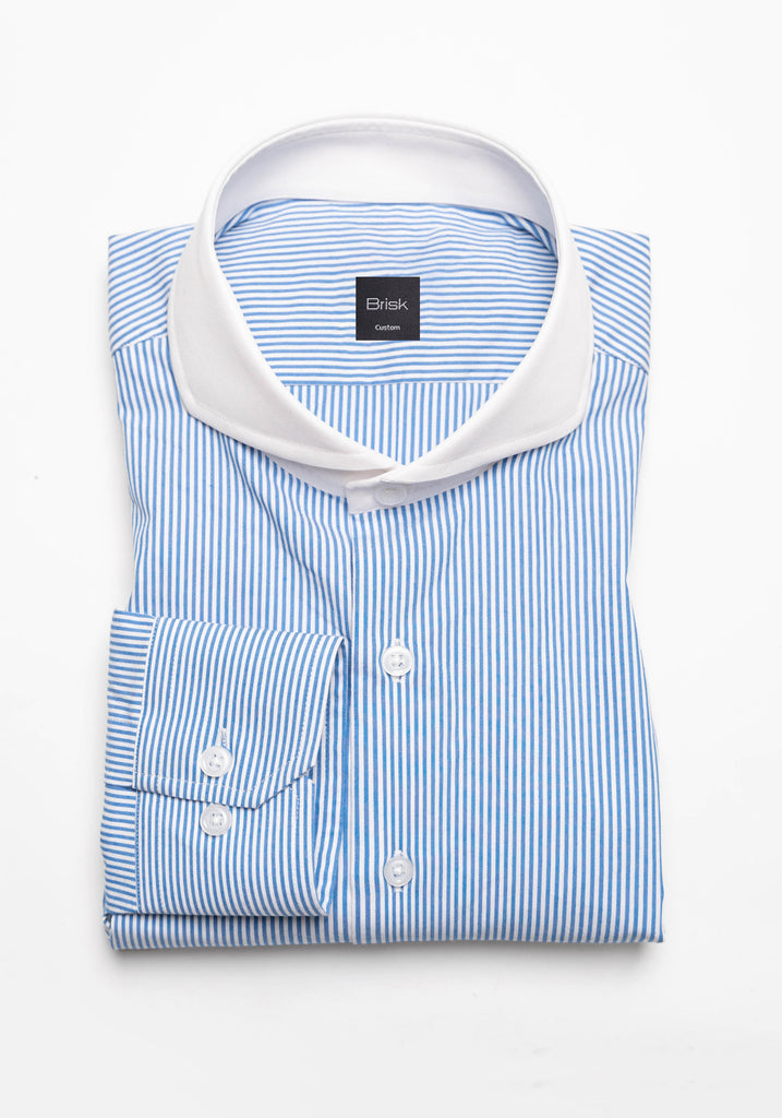 80’s Super Fine Cornflower Blue Contrast Collar Shirt - Lightweight
