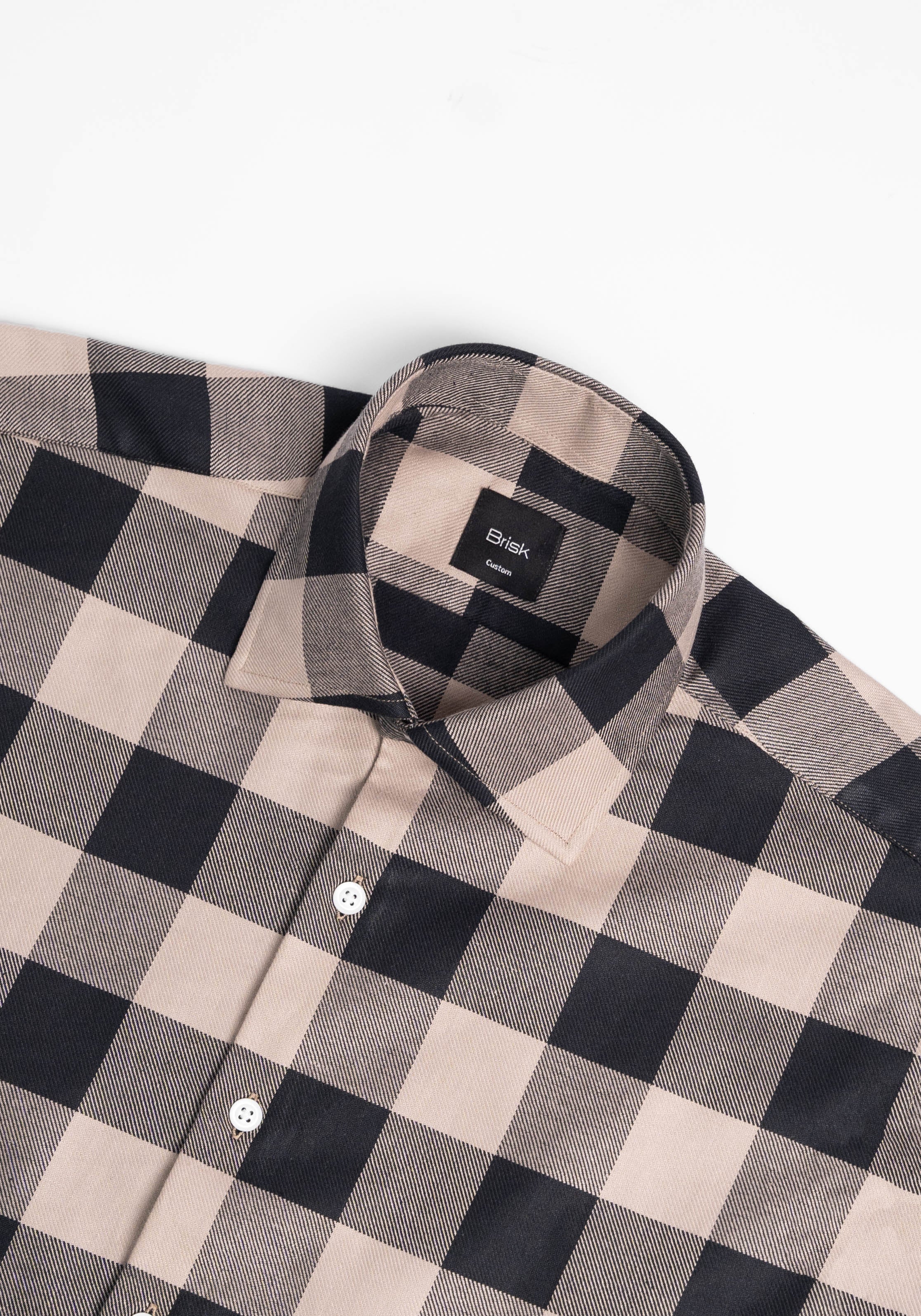 Black Beige Bold Boxes Heavy Flannel Shirt