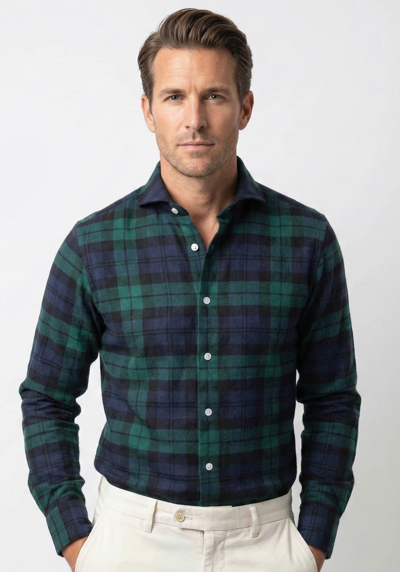 Channel timeless style with our Blue Green Black Watch Bold Tartan Flannel Shirt, a classic piece that brings heritage charm into the modern wardrobe. Featuring a bold yet versatile tartan pattern in rich shades of blue green and black, this shirt exudes character and rugged sophistication. Crafted from soft, breathable fabric, it offers lasting comfort whether layered casually over a tee or dressed up under a jacket. Perfect for adding a touch of pattern and personality to your everyday look, it pairs effortlessly with denim or chinos for a refined yet laid-back ensemble.