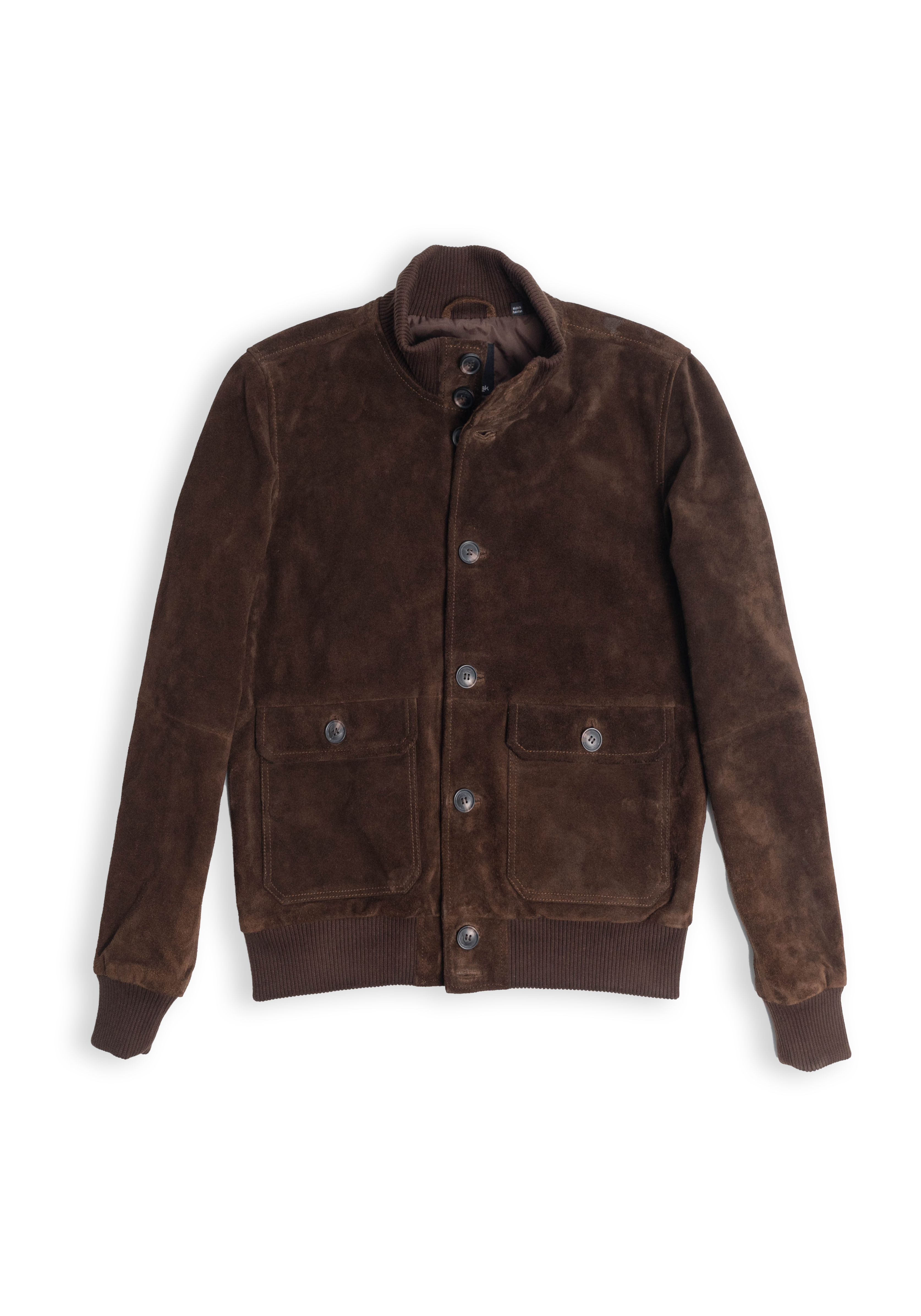 Crafted from 100% young buffalo suede, this jacket embodies refined ruggedness and timeless sophistication. The naturally supple texture of young buffalo hide gives it a luxurious handfeel while maintaining exceptional durability. Designed with a modern silhouette, it features a button-front closure, two functional flap pockets, and ribbed trims at the cuffs and hem for a structured yet comfortable fit.