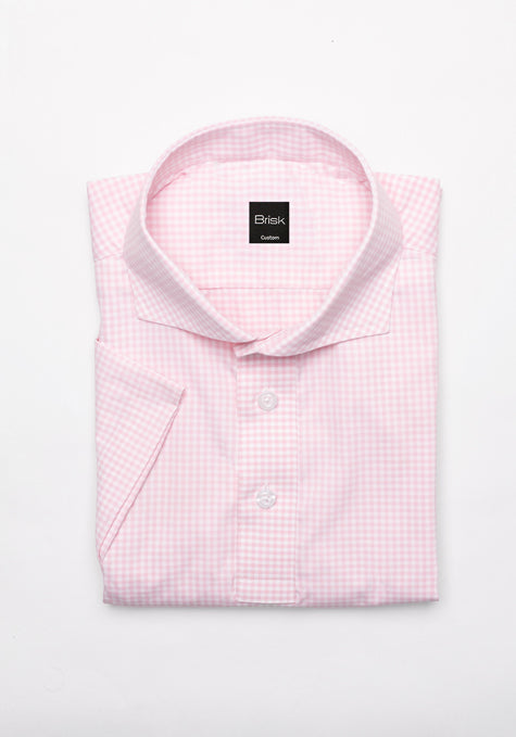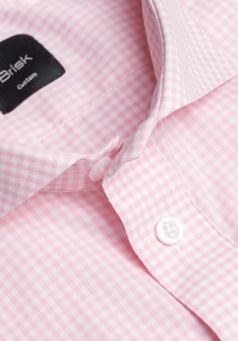 Pink Mini Gingham Performance Stretch Half Sleeves Shirt - Wrinkle Free