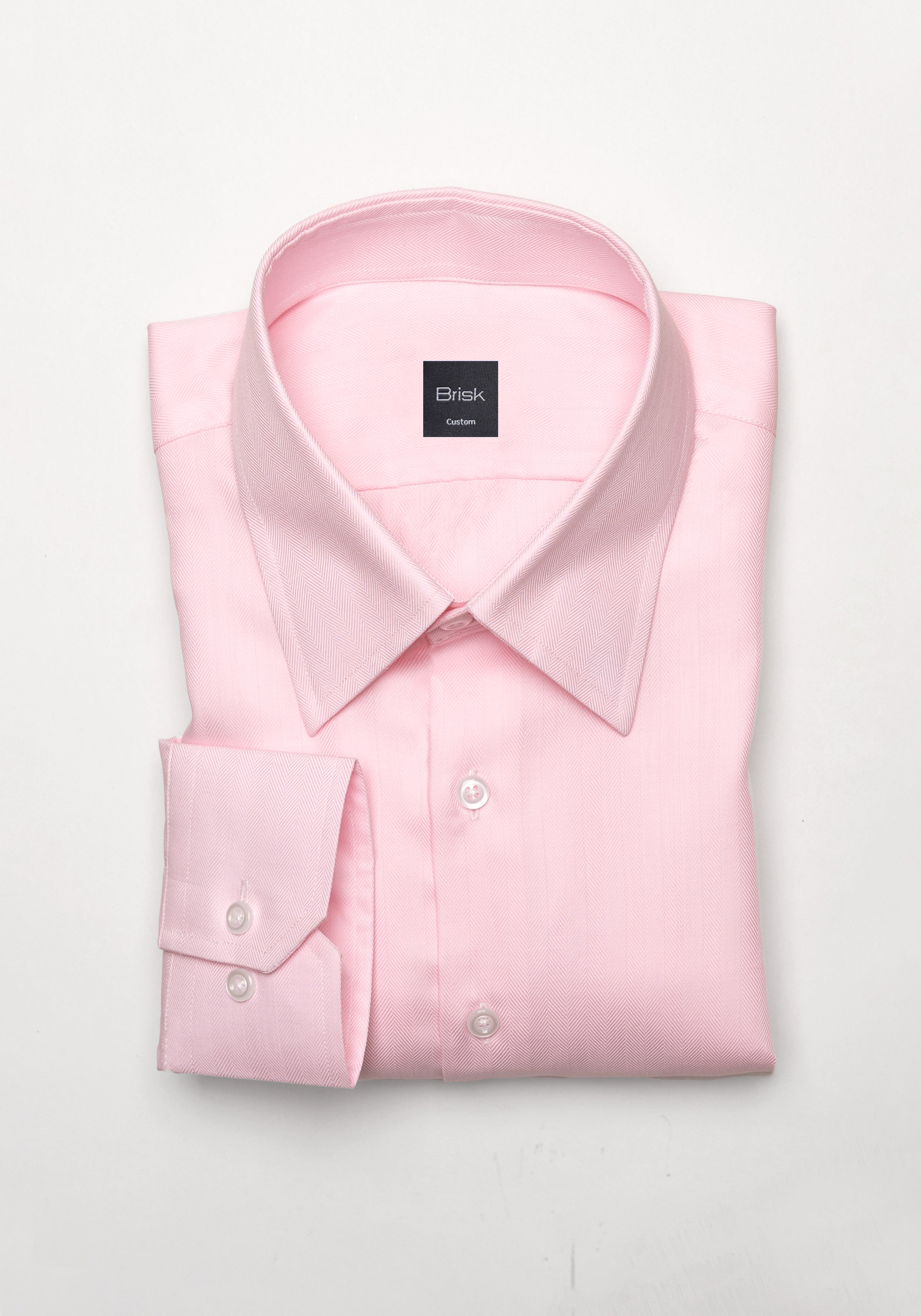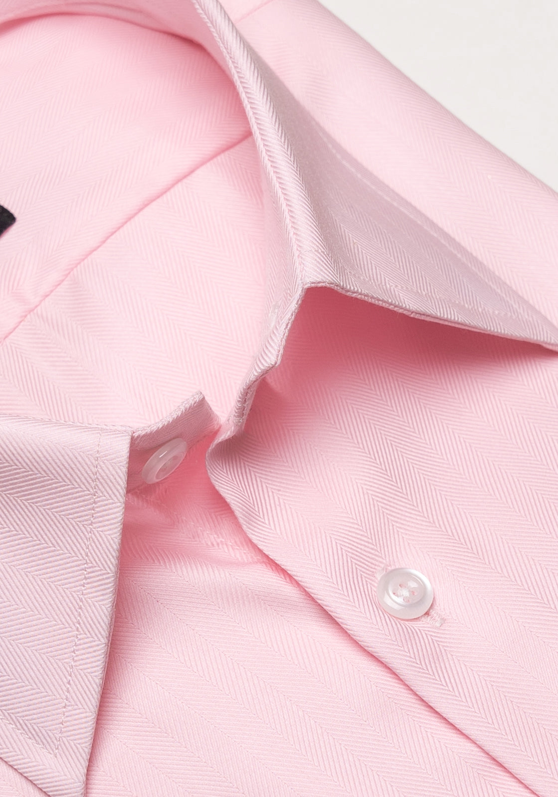 Egyptian Pastel Pink Herringbone Shirt - Classic Straight Collar