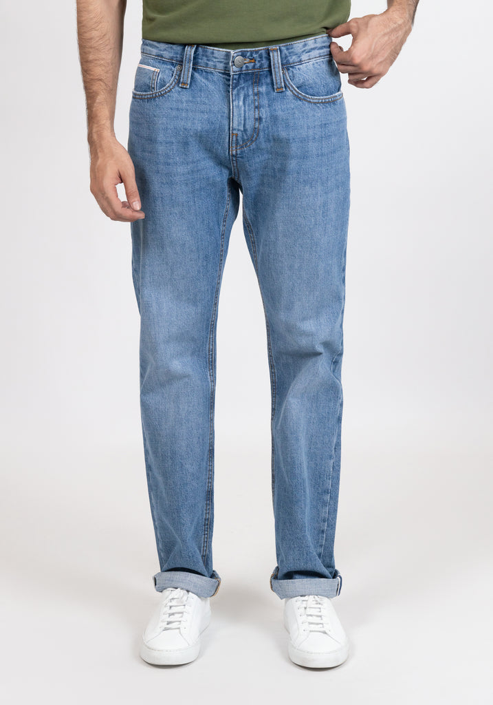 Light Medium Wash Slim Straight Selvedge Jeans - Stud