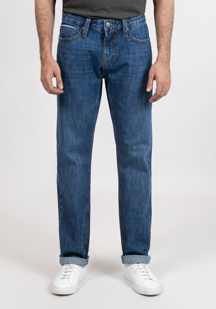 Blue Medium Rinse Wash Slim Straight Selvedge Jeans - Stud