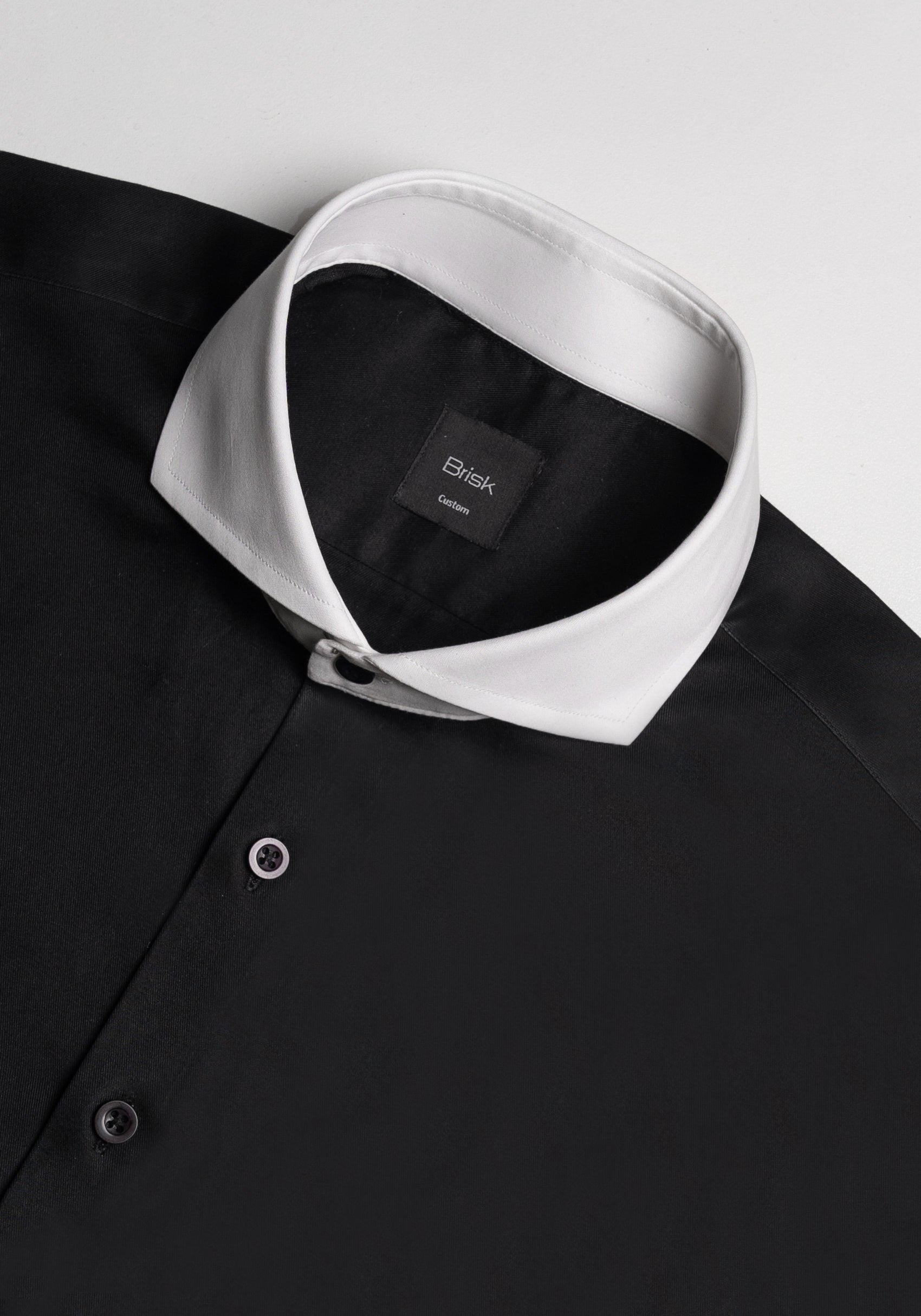 Jet Black Twill Shirt - White Cutaway Extreme Collar & French Cuffs