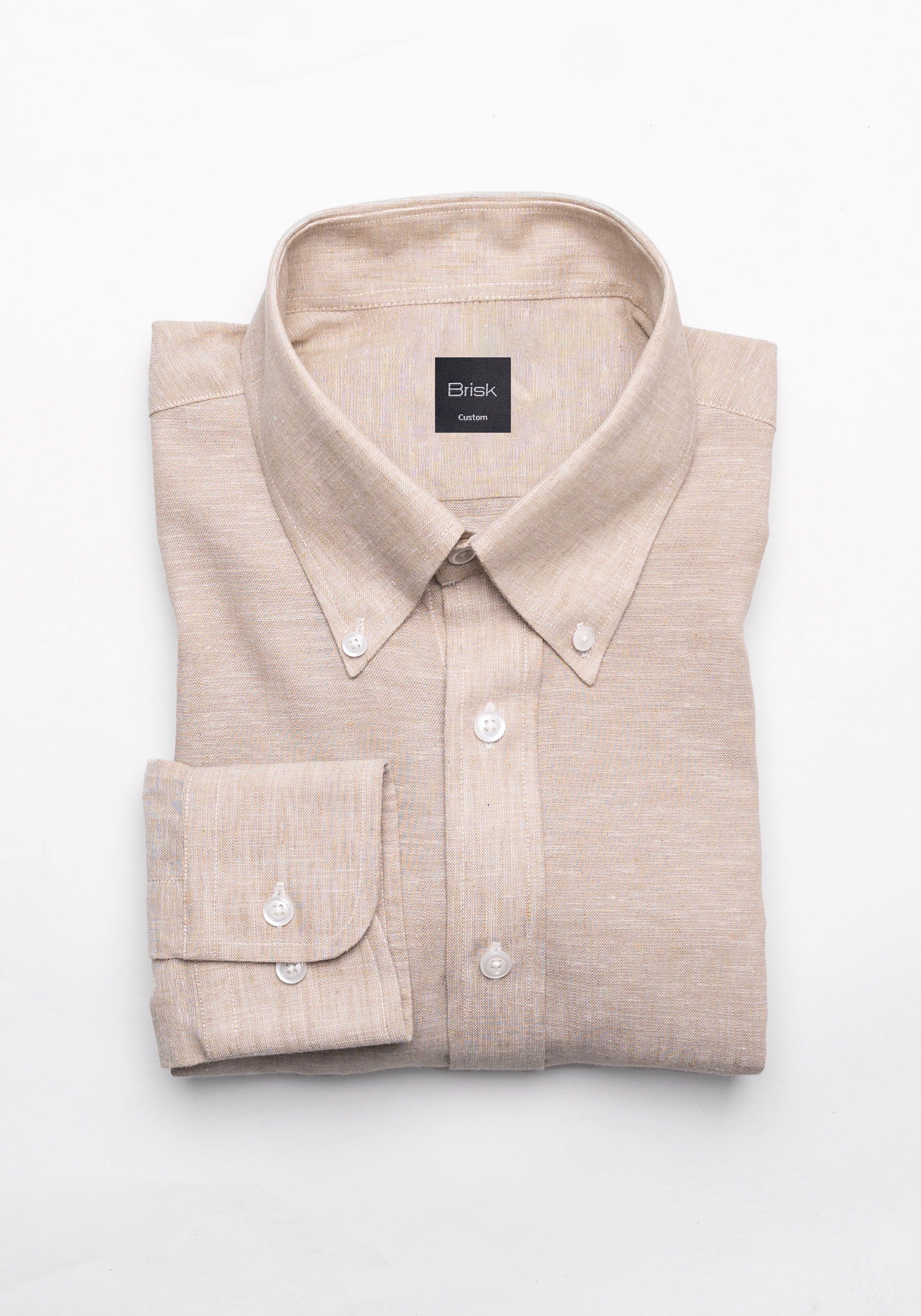 Tan Cotton-Linen Shirt - Button Down Collar